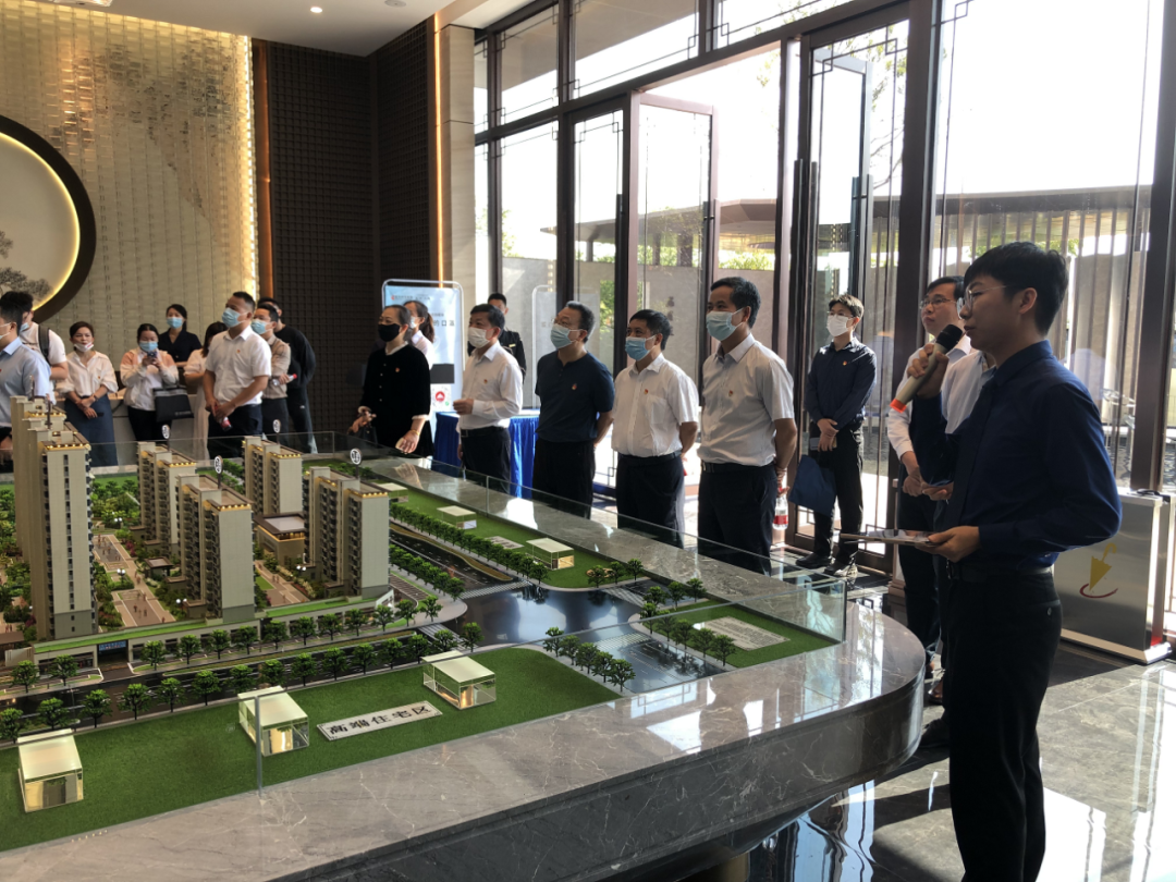 赣州城投集团全资自主开发的星洲九樾项目是此次党建现场交流会观摩点之一。上午10时许,市国资委党委委员、副主任黄晓东一行抵达星洲九樾项目,带领参加人员现场观摩项目党建工作开展情况,城投集团土地置业公司执行董事刘太阳陪同考察并作讲解。