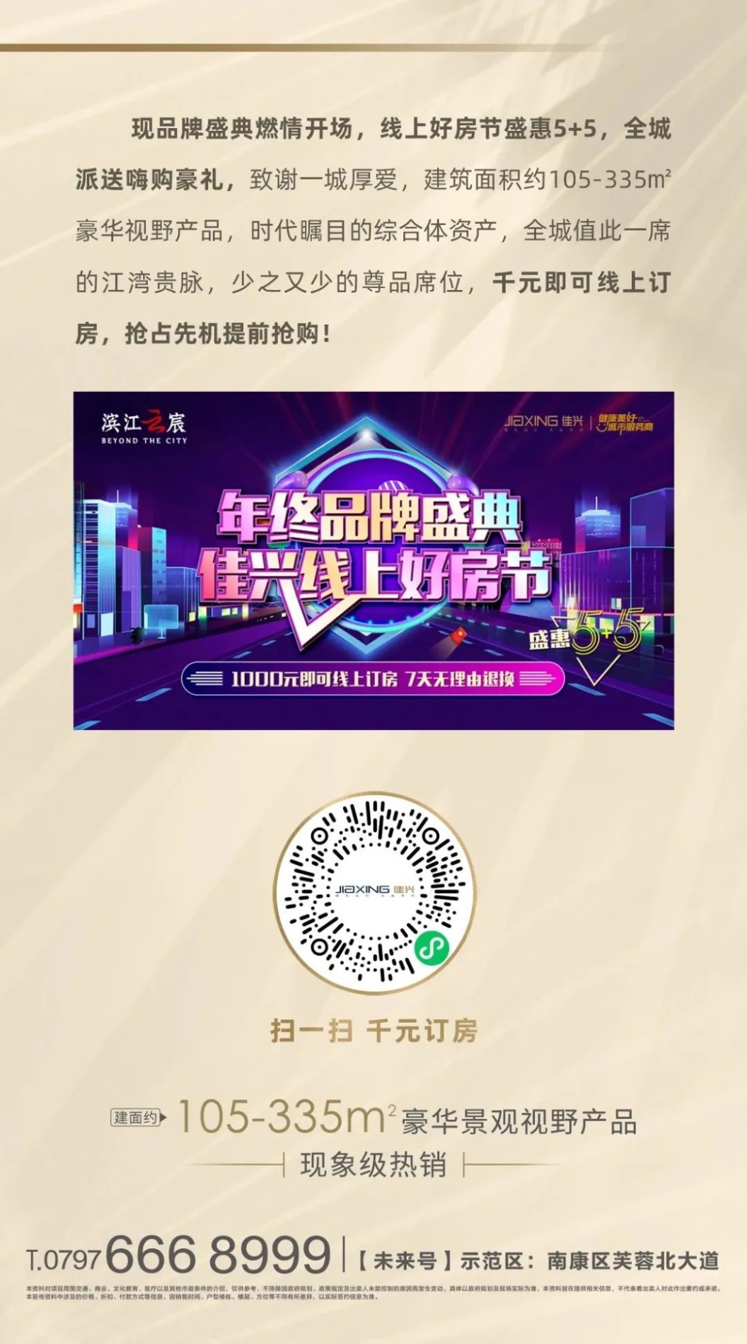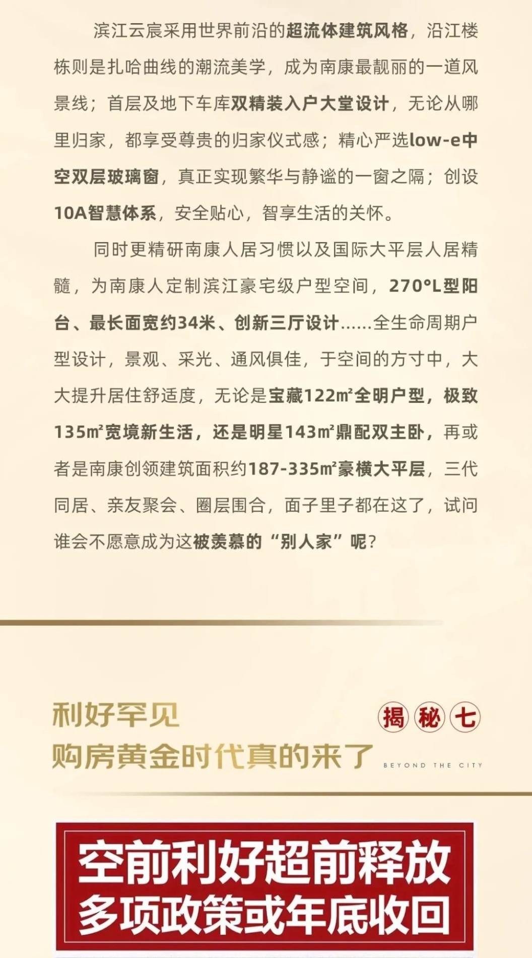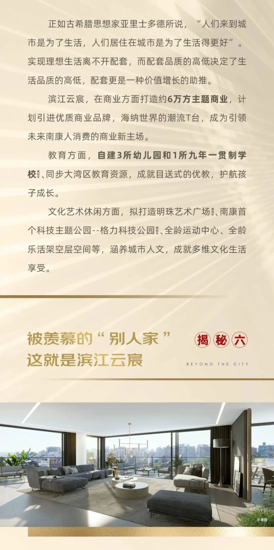 本资料对项目周围交通、商业、文化教育、医疗以及其他市政条件的介绍,仅供参考,不排除因政府规划、政策规定及出卖人未能控制的原因而发生变动,具体以政府规划及现场实际为准,本资料旨在提供相关信息,不代表着出卖人对此作出要约或承诺。本宣传资料中涉及的价格、折扣、付款方式等信息,因销售时间、户型楼栋、楼层、方位等不同有所差异,以实际签约信息为准。