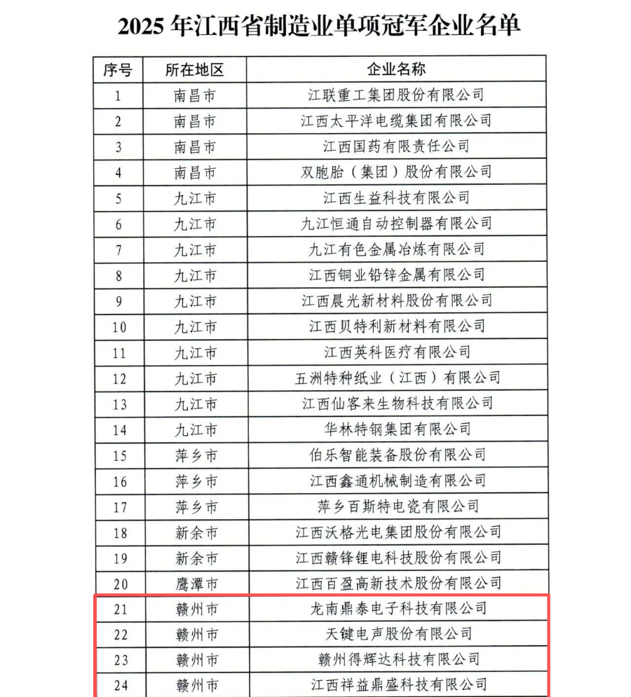 江西省制造业单项冠军企业!赣州+15