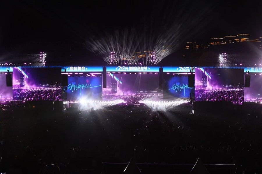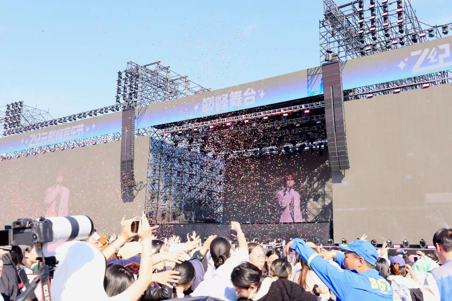 在持续十小时的演出中,歌手们倾情献唱,并不时与台下观众互动。绚丽灯光与活力表演交织,一次次将现场氛围推向高潮。数万乐迷随旋律挥动荧光棒,呐喊与合唱此起彼伏,整个广场仿佛化为一片跃动的音乐海洋。“我专程为许嵩而来,能这么近距离听到他演唱,真的太激动了!”乐迷梁女士兴奋地表示。