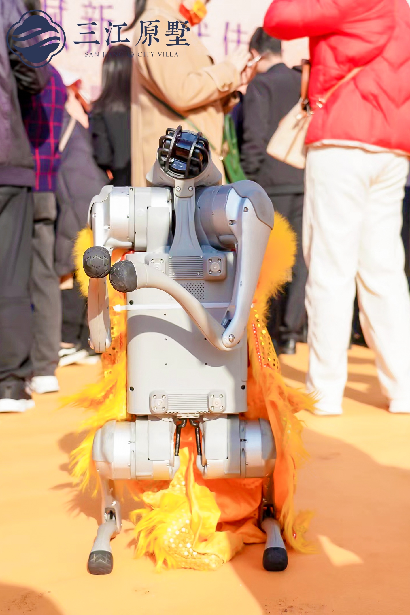在仪式正式开始前,在人群中间,有一位特别的嘉宾吸引大家的目光——来自春晚舞台的科技使者宇树机器人和机器狗,为大家带来一场穿越未来的见面礼!