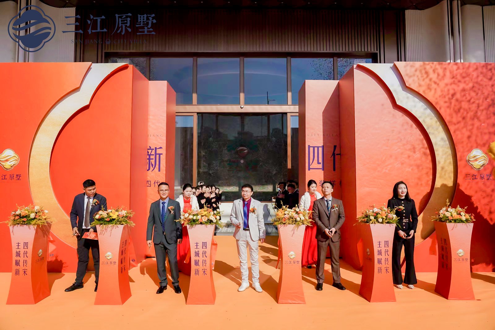 5位领导上台剪彩仪式将活动推向高潮,在全体来宾的倒数声中,金剪落下,礼花齐放,大门缓缓打开,标志着三江原墅正式迎来全城品鉴。
