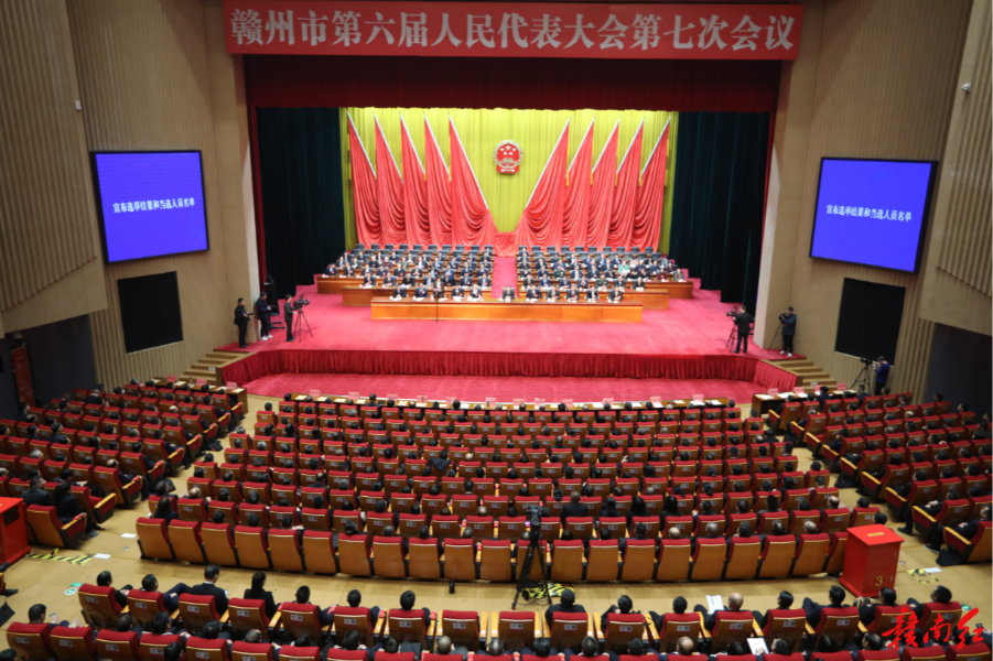 1月23日下午,赣州市第六届人民代表大会第七次会议举行第三次全体会议。会议以无记名投票方式,选举漆海云为赣州市人民政府市长,胡俊涛为赣州市中级人民法院院长,李正鹏为赣州市人民代表大会常务委员会委员。(记者卢盛)