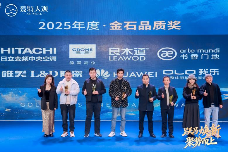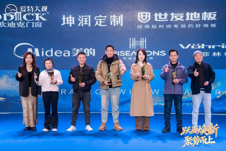 合作商的鼎力支持,是我们前行的坚实后盾。在合作商表彰环节,现场气氛热烈非凡。随着主持人激昂的宣读,“创新共研奖、至诚服务奖、金石品质奖、战略共赢奖”四大奖项熠熠生辉,致敬各合作商在产品供应、技术创新、服务保障等方面的卓越贡献。爱特大观始终秉持“合作共赢”理念,构建稳定高效的供应链体系,与合作商们以匠心铸品质,以协同促发展,共同为业主提供健康环保、优质的家装解决方案。