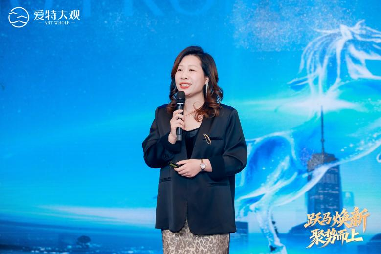 随后,爱特大观装饰总经理李郁芬女士针对赣州市场,正式发布了赣州市场专属的全新战略,李总立足于赣州本地的消费需求,紧密贴合集团的战略部署,阐述新战略的内涵。同时,她还对2026年全案新品进行了详细讲解,从设计理念到功能特色,从品质保障到服务升级,每一个细节都展现出以新战略赋能区域发展、以新品升级服务体验的坚定决心。李总的精彩讲解,为现场嘉宾描绘出爱特大观深耕赣州市场的崭新蓝图,全新战略及新品将为赣州高端家装市场注入全新活力。