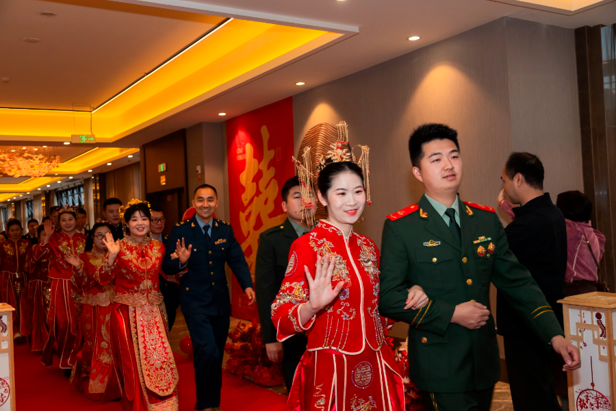 文艺汇演中,钢琴独奏《梦的婚礼》以艺术之名礼赞军人家庭;全体现役和退役军人与军嫂们合唱的《妻子》,诠释了“你为国家站岗,我为你守家”的双向奔赴;退役老兵与新兵班长的拉歌对决,则将婚礼气氛推向高潮。证婚人在致辞中表示:“这场集体婚礼不仅是爱情的庆典,更是对军人奉献精神的崇高致敬。”(记者钟雅欢)